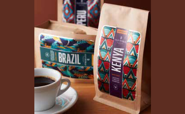 With white toner, you can now create stunning label designs with colourful and shimmering effects on metallic substrates – like here for coffee beans.