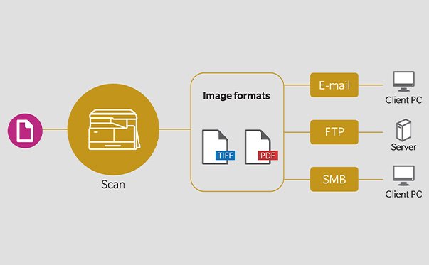 Scan and send your documents directly to email or select from a variety of server types for direct storage.